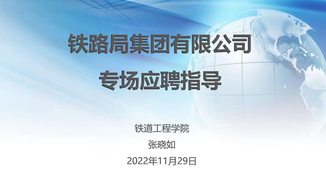 会议第三项,信号系张晓如老师为大家从认识铁路局集团公司,到了解专业相关岗位,以及铁路局就业情况分析方面做讲解。张老师强调了要把握机会,紧盯招聘信息,熟悉报考流程,才能更好的通过笔试面试。