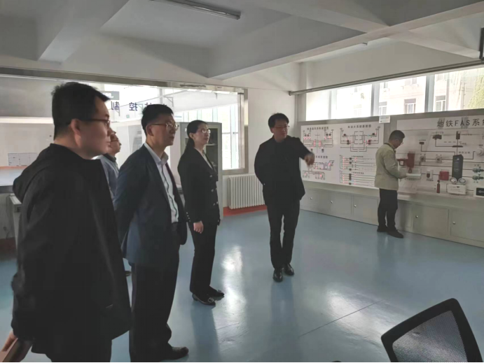 在宝鸡铁路技师公司党政办主任叶云飞的带领下,张书记一行先后参观了机车专业实习基地、轨道交通仿真实训中心、国家级高级技能人才培训基地、城市轨道交通实训基地等。