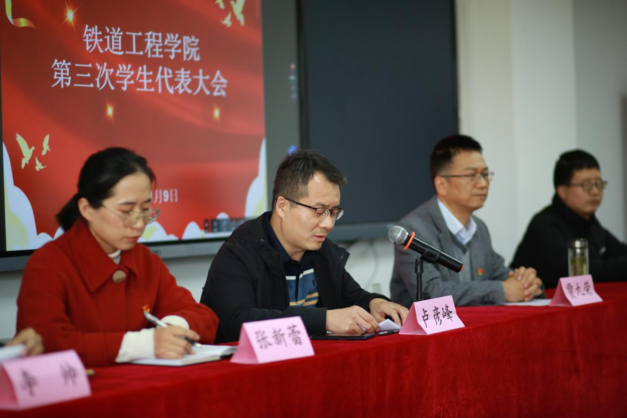 铁道工程学党支部书记卢彦峰致开幕词,对公司员工会工作提出了三点期望,一是希望同学们要有理想、有信念,把爱国之情、报国之志融入到中华民族伟大复兴的伟大事业之中。二是希望同学们适应时代发展,努力锤炼本领,要充分发挥员工干部的带头模范作用,在实践中不断提高自己的学习能力、竞争能力和自主创新能力。三是希望同学们强化责任意识,敢于担当作为,用担当和尽责展现青春风采,在拼搏的青春中成就事业华章!