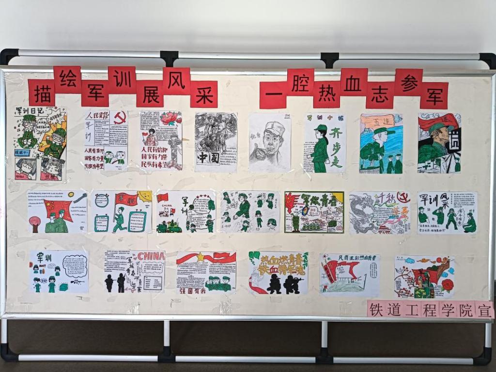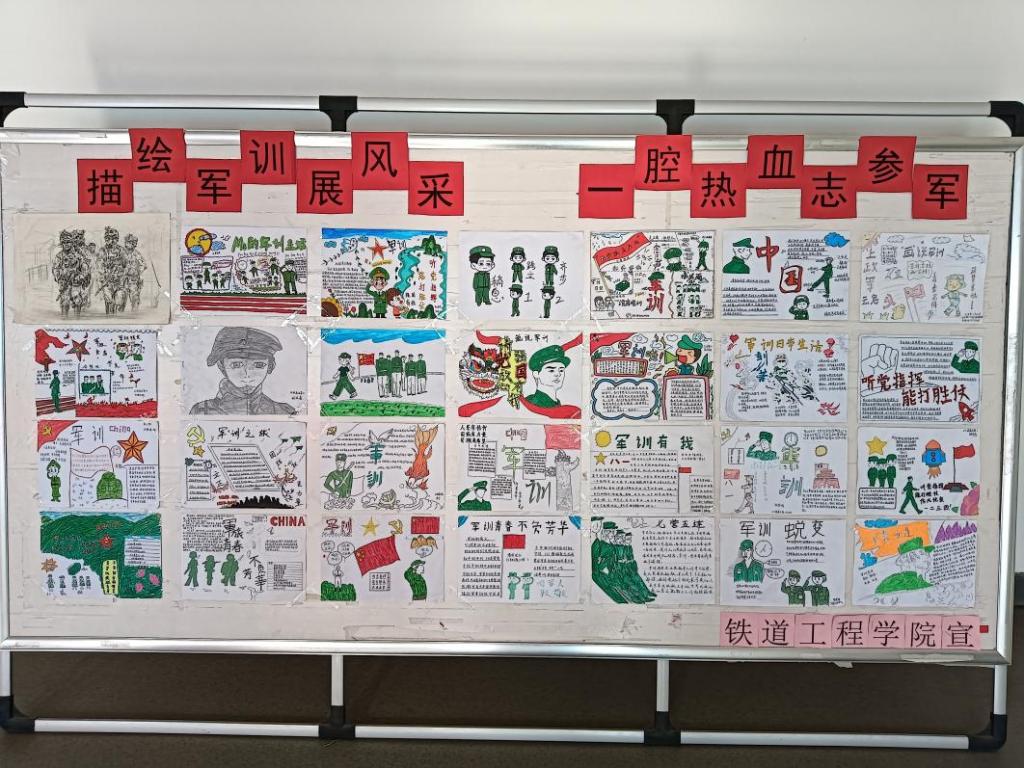 千琢璞为玉,百炼铁成钢。军训是一堂高质量的国防教育课、爱国主义教育课,同时也是汇聚团结力量,厚植家国情怀的重要契机。在军训活动中,所有同学意志坚定,不怕苦不怕累,在历练中得到成长。在训练间隙,同学们发挥自身特长,创作了多幅绘画作品,形式多样,内容丰富,表达了参军入伍的志向。