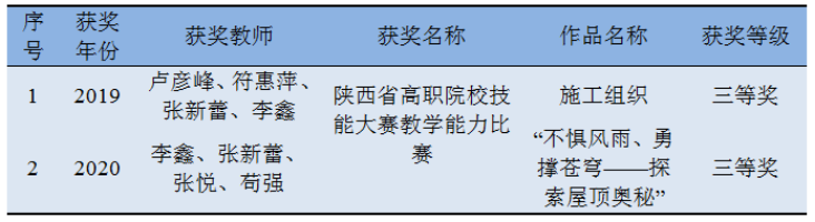 2019年和2020年公司老师参加省教学能力大赛 ,均运用到了BIM技术与专业课程的融通。2019年的参赛课程是《建筑施工组织与管理》,应用BIM5D软件与专业课的融通,取得了较好效果,大赛获三等奖;2020年参赛课程为《建筑构造》,采取REVIT建模软件与建筑构件的建模结合的方法,形象展示构件的三维立体,让员工能迅速理解构件的各种性状。大赛也获得三等奖的好成绩。(见附录10)