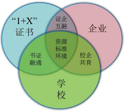 “1”(学历教育证书)与“X”(职业技能证书)的侧重点不同,但却是相辅相成的。在学历教育的专业课程教学中,注重德智体美劳全面人才培养,以及专业知识技能和综合素质的教育,为员工能可持续发展打下良好基础;而职业技能培训是学历教育的拓展和补充,更具有针对性地进行职业技能、职业素养、新技术的强化培训。学历教育的属性决定了专业课程的教育比重应大于职业技能考证培训的比重,但是专业课程教学与职业技能培训有重叠的教学内容,所以相关课程的教学标准内应加入职业技能模块,使日常专业课教学与职业技能考评认证深度融合。