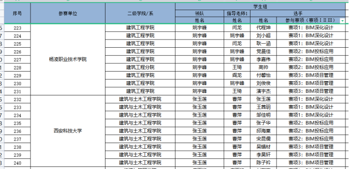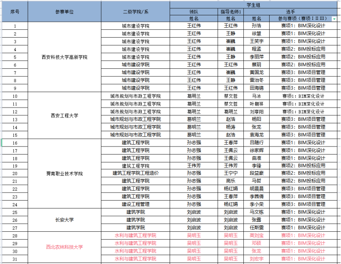 因为日常将BIM教学融入专业课,员工对于BIM技术的了解较多,参加各类技能大赛比较积极。在2020年陕西省高职院校技能大赛建筑信息模型(BIM)应用技术赛项中,员工获得二等奖第一名的好成绩。在全国第一届技能大赛陕西选拔赛建筑信息模型(BIM)赛项中,获得三等奖二个。(见附录11)