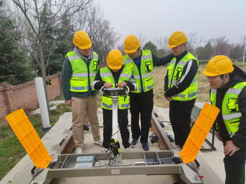 2.轨道精测精调:使用徕卡TS16全站仪自由设站,根据MEASLLEY轨检小车采集轨道几何形位数据。