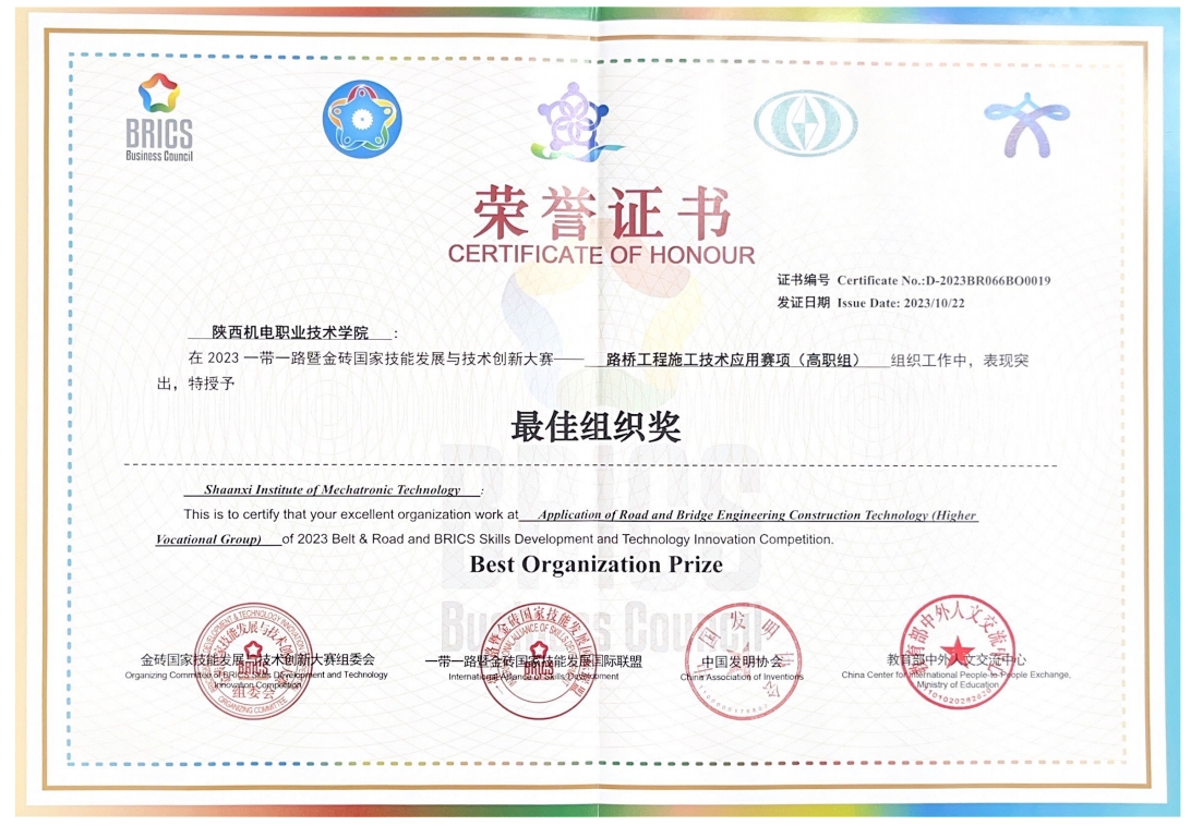 2023第七届一带一路暨金砖国家技能发展与技术创新大赛之路桥工程施工技术应用赛项决赛于2023年10月20日至22日在陕西交通职业技术公司成功举办。