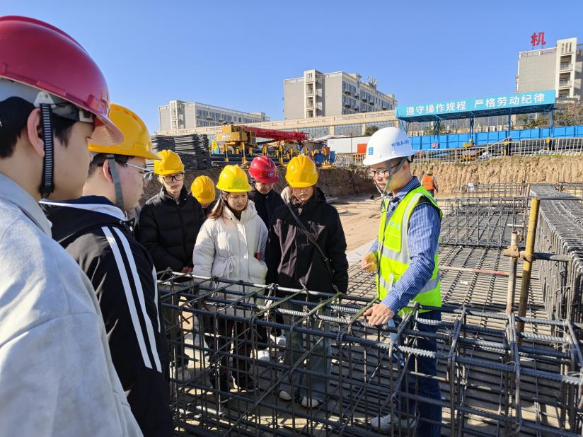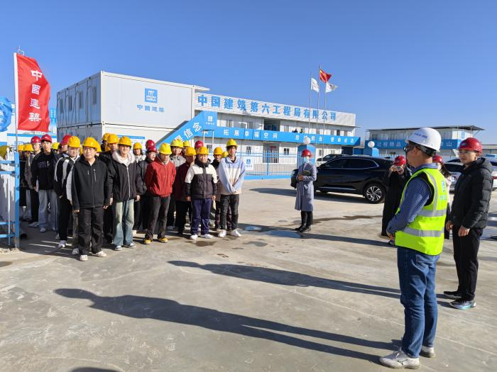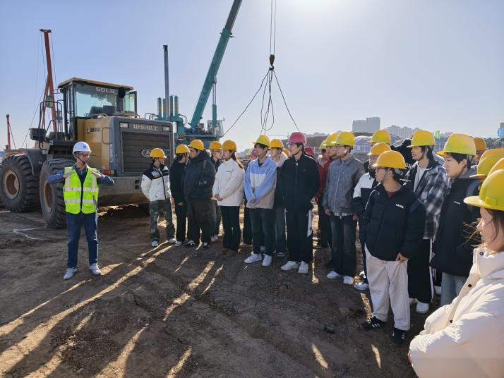 2025 年 11 月 28 日,伟德victor1946 24 级智能建造班员工走进校内新建宿舍楼施工现场,开展了一场沉浸式实训课。伟德victor1946副经理张新蕾、建筑系系主任孙拴虎及建筑系教师史明洋、冯蕊、张盟盟带队指导,中国建筑第六工程局有限公司项目部生产经理武文元受邀担任企业指导老师,为员工带来一线专业指导。