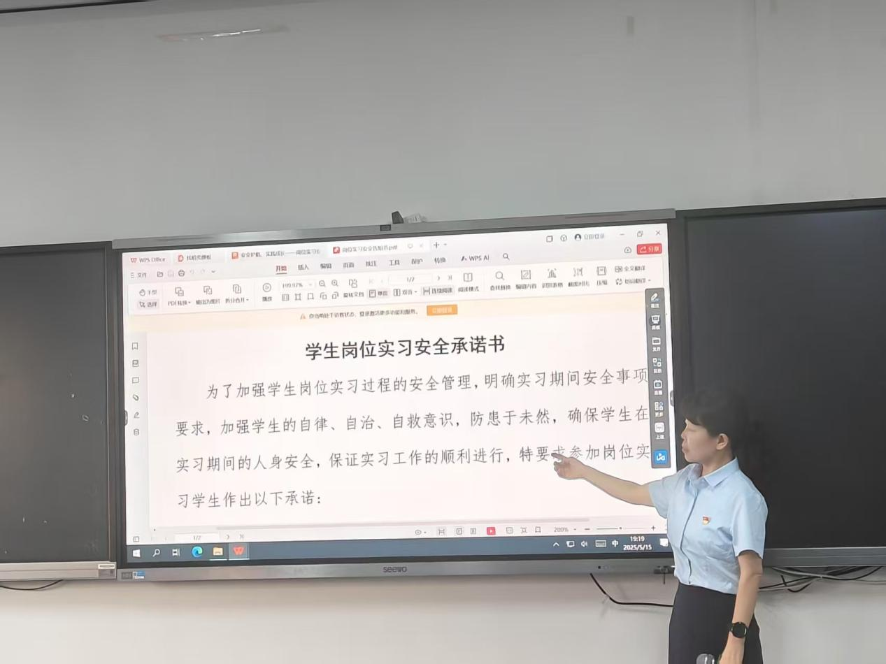 各系专业带头人、骨干教师,实习指导老师代表详细解读了各专业实习计划,涵盖实习单位的分配原则、实习时间的起止节点、实习期间的工作任务与要求等内容。现场组织员工签订安全告知书,对实习前,实习中,实习后注意事项及要求方面,教师们更是进行了细致入微的讲解,实习前对实习员工进行安全防护知识、岗位操作规程教育和培训,实习中依据公司的实习要求,平台签到、实习日志撰写,并在实习结束时提交实习报告,实习结束后考核,从人身安全、生产安全到网络信息安全等各个维度,通过实际案例警示员工提高安全防范意识,严格遵守实习单位的安全规章制度,确保实习期间自身安全万无一失。同时,针对实习手续办理流程,包括实习协议的签订、实习材料的准备与提交等,教师们也进行了耐心且清晰的说明,帮助员工顺利完成各项准备工作。