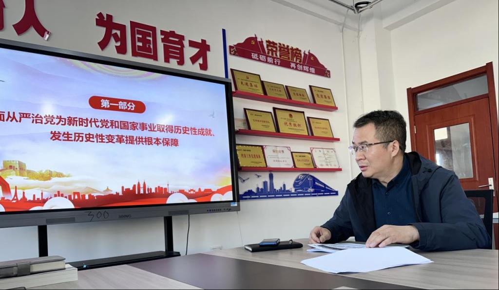 随后,支部副书记卢彦峰以“持之以恒推进全面从严治党”为主题讲授专题党课。党课紧扣党的二十届四中全会精神,围绕“全面从严治党为新时代党和国家事业发展提供根本保障”“‘十五五’时期形势任务对全面从严治党提出新要求”“以永远在路上的坚韧执着纵深推进全面从严治党”三大核心内容,结合高公司党建工作实际,系统解读了坚持党中央集中统一领导、用党的创新理论凝心铸魂、增强党组织政治功能与组织功能等关键要求,引导全体党员教师强化纪律意识、筑牢思想防线,将全面从严治党要求融入师德师风建设与教书育人实践,以优良作风推动公司高质量发展。