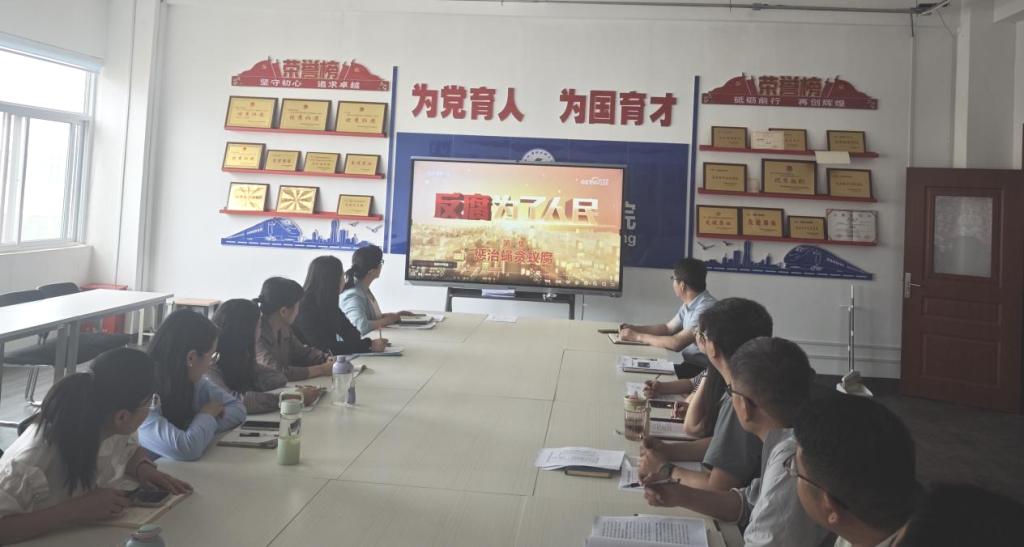 “以案示警、以案明纪”警示教育环节,支部纪检委员李帅通报了一批违纪违法典型案例,全体党员集中观看中央纪委国家监委警示教育系列片《反腐为了人民》第一季“惩治蝇贪蚁腐”。专题片以基层“微腐败”真实案例,揭露其对群众利益的侵害。满春燕要求党员教师以案为鉴,时刻绷紧纪律之弦,坚决杜绝“四风”问题,自觉维护教师队伍的良好形象。支部全体党员深刻认识到腐败危害无大小,必须时刻保持警醒,筑牢廉洁自律防线,特别是身为教师党员,更要坚守高尚师德,严守纪律红线,在公司产品中以身作则,引导员工树立正确价值观。