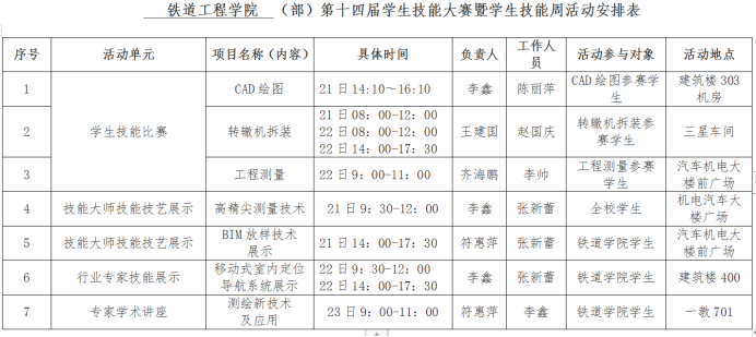 本次技能周,员工技能比赛赛项为CAD绘图比赛,转辙机拆装比赛和工程测量比赛。