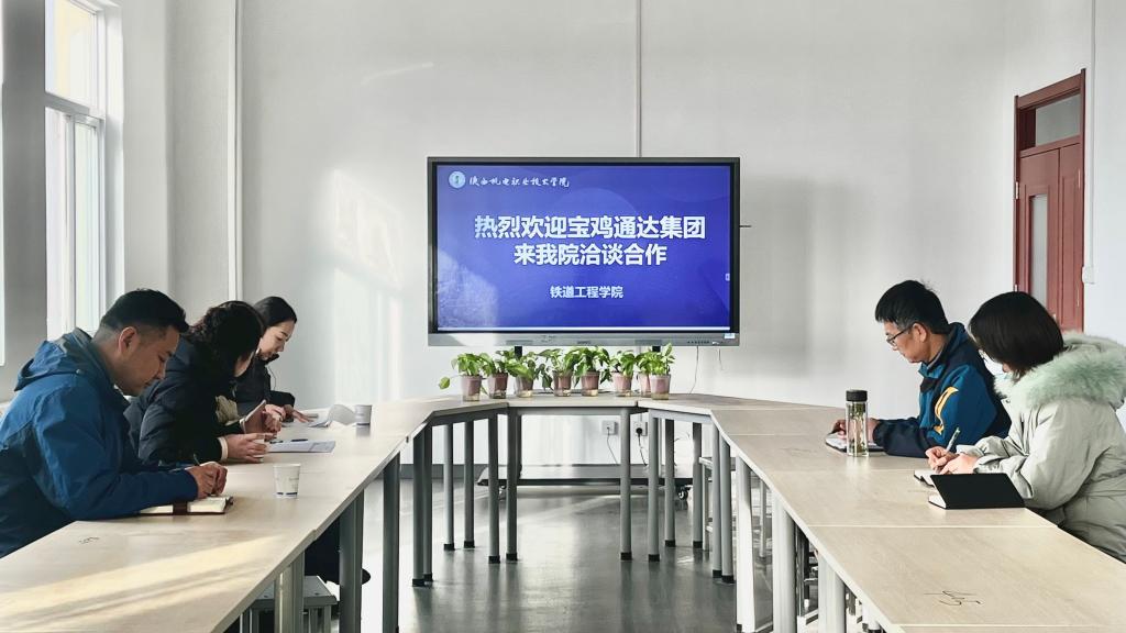贾经理对宝鸡通达工程集团一行的到来表示欢迎,详细介绍了公司目前的发展势态、专业设置等基本情况,重点介绍了公司在校企合作方面的政策、运行机制及合作领域,也感谢宝鸡通达工程集团前期对公司工作的支持,希望今后校企合作能进一步加强,开展更广泛更深层次的合作与交流。