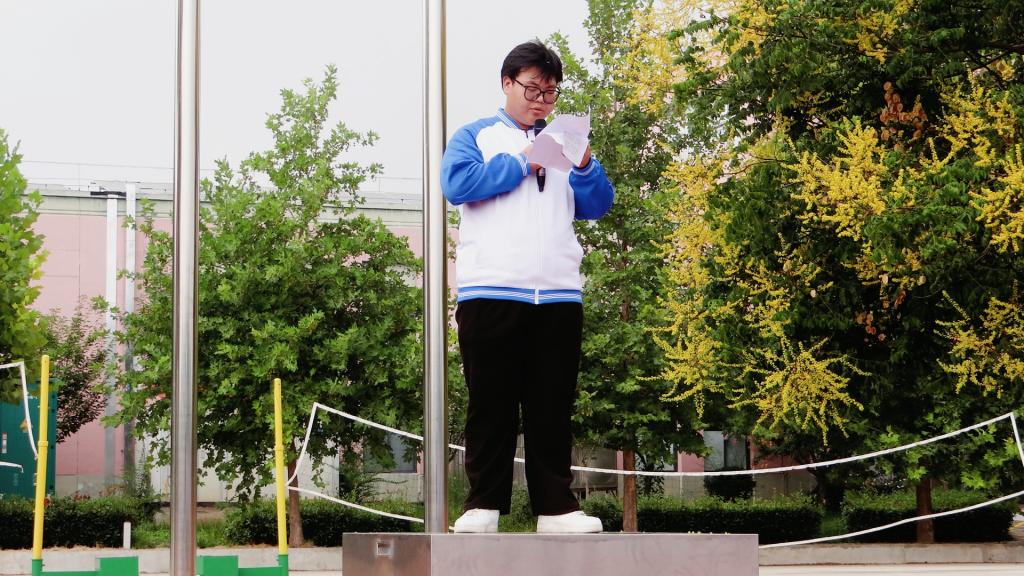 礼毕,由23铁道工程5班李思彤同学进行了主题为《奋进新学期,筑梦新征程》的演讲,他通过奥运体育健儿的成功,激励同学们根据自己的兴趣、专业方向及未来规划,设定清晰、具体、可实现的目标。