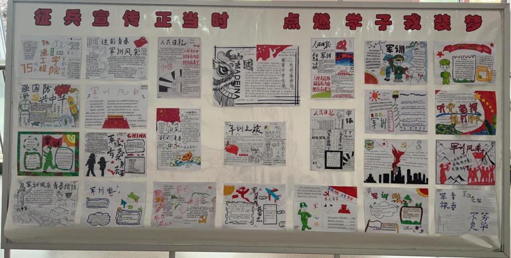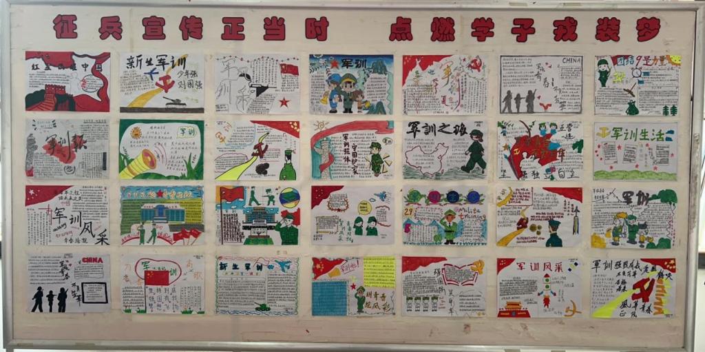 活动发布后,同学们积极参与。他们用手中的画笔,描绘出心中对军人的崇敬和对军旅生活的向往。一幅幅精美的手抄报,主题鲜明,内容丰富。有的手抄报以鲜艳的色彩和生动的画面展现了军人的飒爽英姿,让人感受到军人的威严与荣耀;有的手抄报则通过详细的文字介绍了征兵政策和流程,为有参军意向的同学提供了宝贵的信息;还有的手抄报结合了自己的军训感悟,表达了对祖国的热爱和对国防事业的支持。