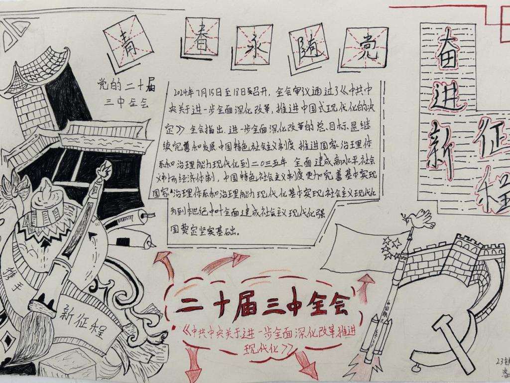 为进一步深入学习贯彻党的二十届三中全会精神,伟德victor1946于10月15日至10月31日特别策划并举办了此次“学习党的二十届三中全会精神”主题手抄报活动。旨在通过手抄报这一形式,让员工们更加深入地理解党的二十届三中全会的重要意义和深远影响,同时激发员工的学习热情和创造力,引导他们将党的理论与专业知识相结合,展现出新时代青年的责任感和使命感。