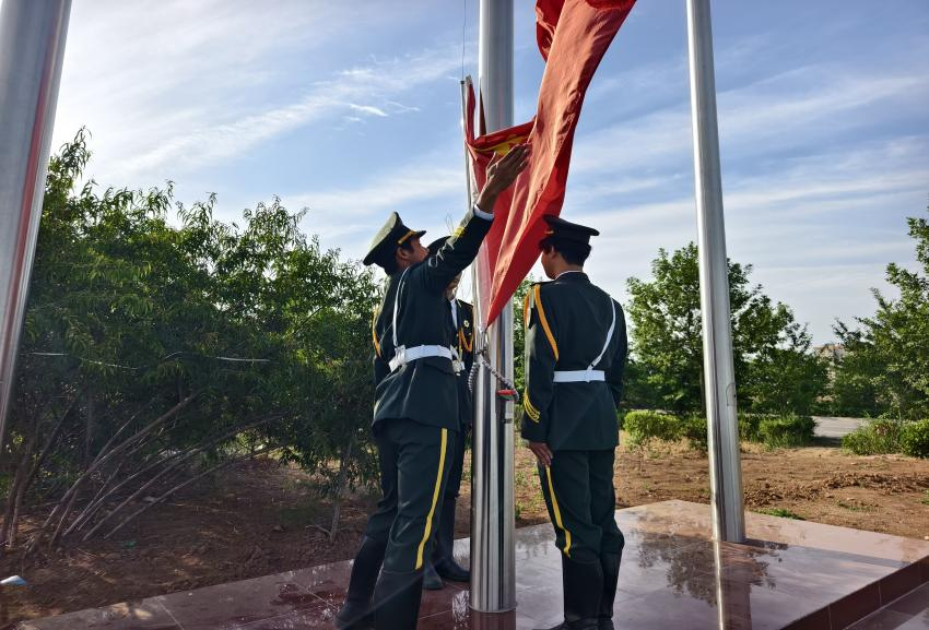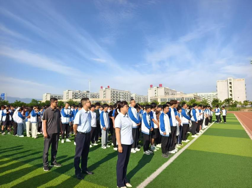 伴随着雄壮的《义勇军进行曲》,全体师生肃立行注目礼,鲜艳的五星红旗冉冉升起,爱国之情在晨光中激荡。