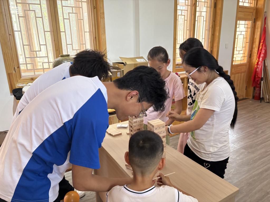 心理健康游戏互动环节,团队结合体验儿童的状态,开展了釜底抽薪、五子棋、房树人测验等活动。釜底抽薪游戏中同学们展现了敏捷的思维能力;五子棋对弈中,孩子们专注思考,在棋局的输赢中学会了坦然面对;房树人测验里,孩子们在画纸上尽情挥洒创意,队员们则通过孩子们的画作,更深入地了解他们在体验过程中的心理变化和内心需求,给予针对性的回应。
