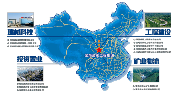 宝鸡通达工程集团是一家集项目开发建设、路桥工程施工、试验检测、矿山开采、骨料加工、沥青混凝土和商品混凝土生产、工程物流运输、建材生产销售、投资置业、文化旅游为一体的现代化集团企业。