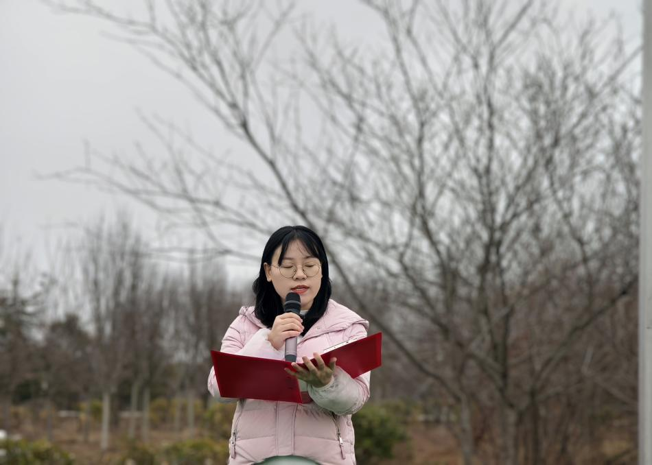 第二项议程升国旗、奏唱国歌。伴随着雄壮激昂的国歌旋律,五星红旗在晨曦中缓缓升起,迎风飘扬。全体师生肃立,目光紧随国旗,行注目礼,心中激荡着对祖国无限的热爱与崇高的敬意。这一刻,凝聚着师生的共同心声,彰显着中华民族的尊严与力量。