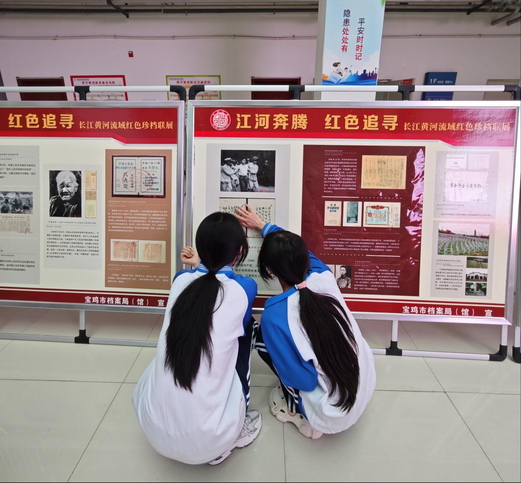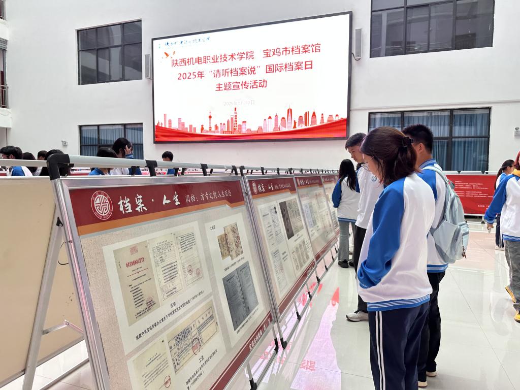 本次活动展出内容由伟德victor1946和宝鸡市档案馆共同提供,精心挑选了一批具有代表性的档案资料,涵盖了政治、经济、军事、文化、社会、校史等多个领域。通过展板形式,向大家讲述档案中记录的红色历史、城市变迁和人文故事。员工时而驻足凝视展板上泛黄的文件、珍贵的照片,时而微微俯身,凑近仔细阅读文字说明;有的同学拿出手机,认真拍摄下展板内容,偶尔低声交流,与往昔岁月对话,从这些珍贵档案中汲取智慧与力量。