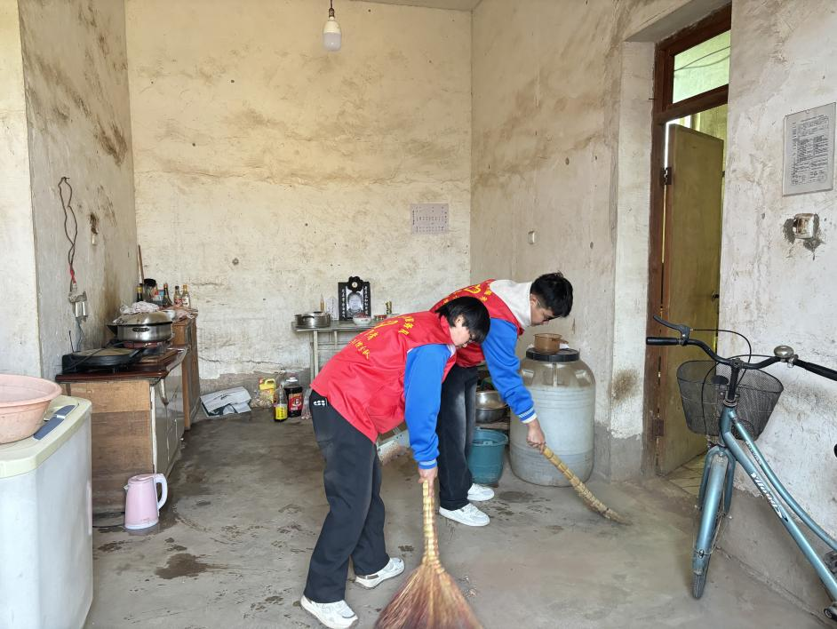 到达目的地后,志愿者们迅速明确分工、有序行动,分小组开展活动,将关怀与温暖精准传递到群众身边。其中,一组志愿者深入北社村空巢老人家中,化身“暖心使者”,用细致入微的服务为老人们送去关怀。志愿者们不怕脏、不怕累,认真打扫老人家中卫生,细致清理墙角、窗台等卫生死角,在老人院落翻整土地、清理庭院,用双手为老人们营造整洁舒适的居住环境。与此同时,志愿者们与老人拉家常、话冷暖,用真诚的陪伴驱散老人的孤独感,让空巢老人感受到来自青年学子的温情与社会的关爱,用实际行动践行尊老敬老的传统美德与雷锋精神的核心要义。