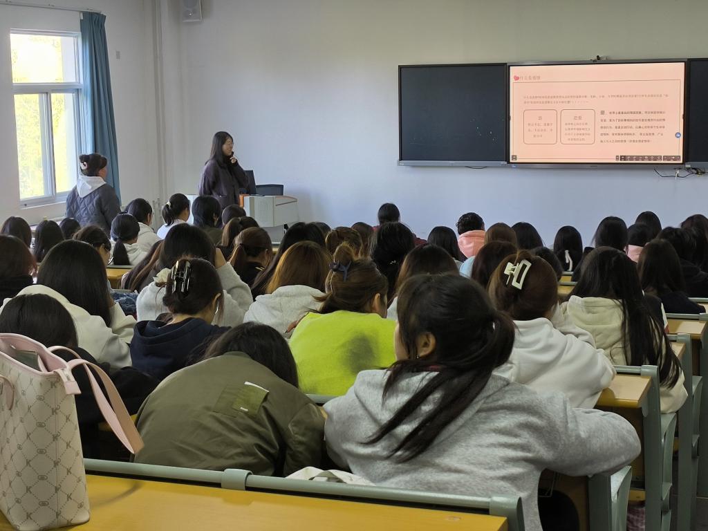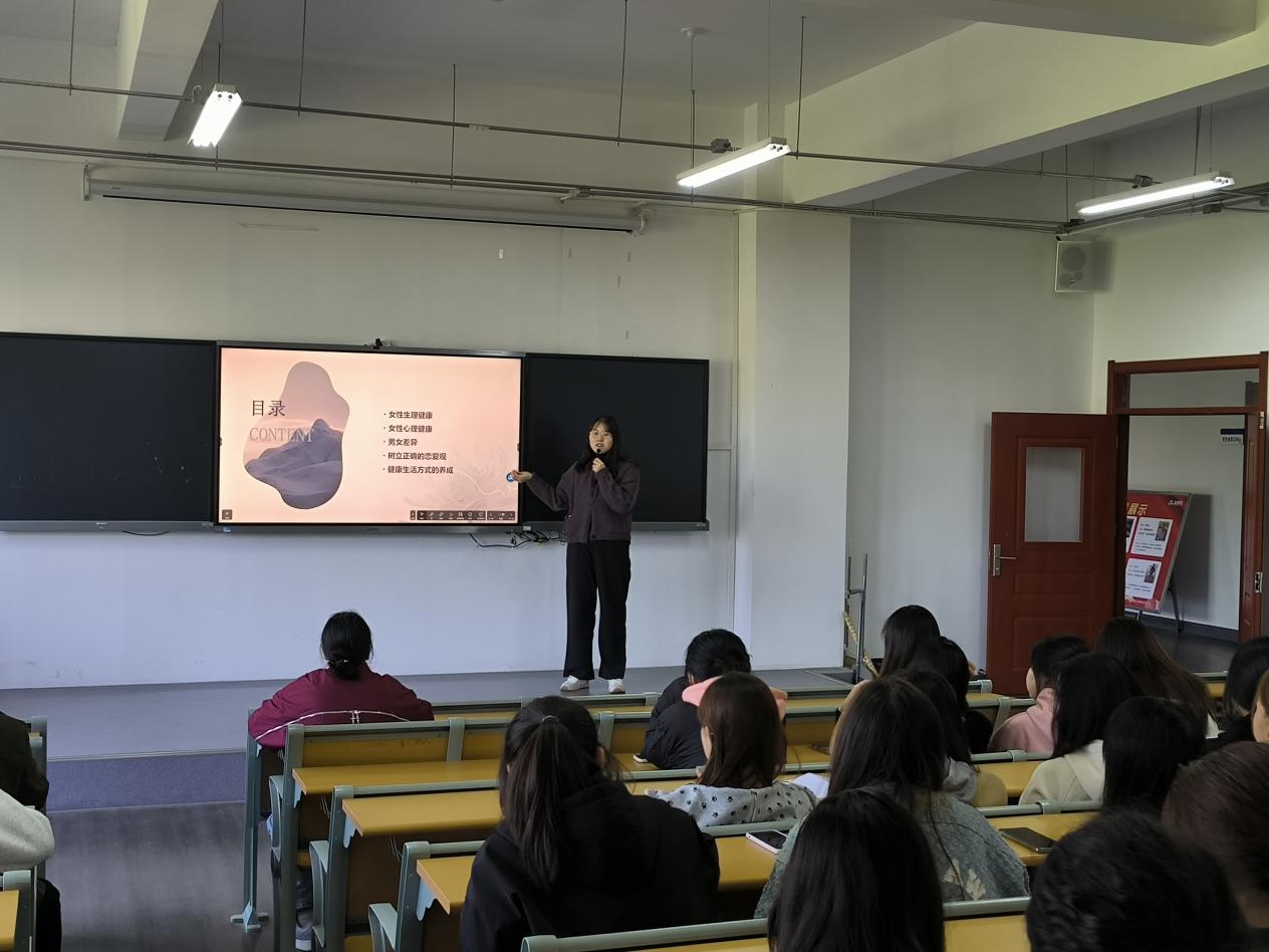 本次讲座杨颖老师从女生的生理健康、女生的心理健康、男生和女生思维的差异、如何树立正确的恋爱观、女生健康生活方式的养成五个方面和同学们进行交流分享。
