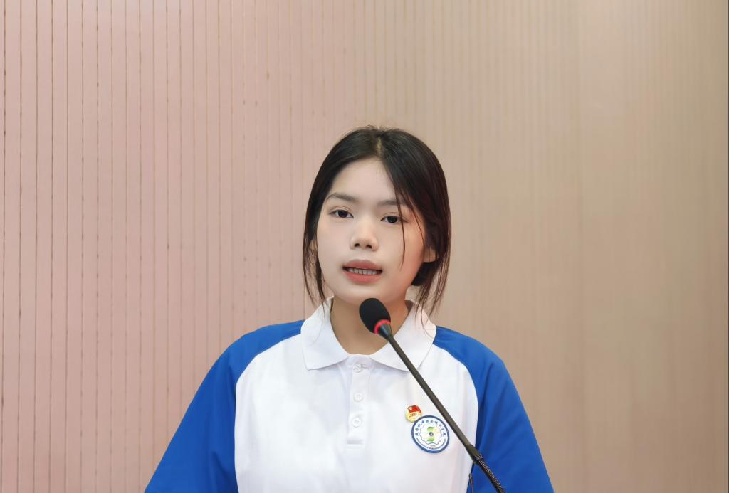新团员代表肖鹏丽怀着激动的心情,表达了自己加入共青团的荣幸和自豪之情。作为新团员,她提出要坚定信念、积极进取,认真学习党的路线、方针、政策,不断提高自己的政治觉悟和思想素质。作为员工,要勤学善思,立足本职,努力学知识、长本领、增才干。作为新时代的铁道学子,要以“钢小伙、铁姑娘”的精神风貌,勇挑重担,奉献国家,书写属于铁道共青团员的壮丽篇章。