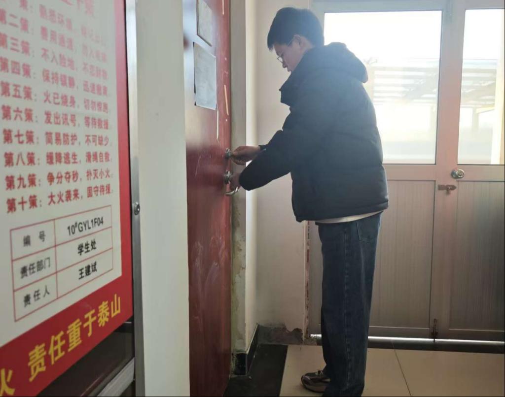 此次检查详细查看了员工宿舍用电、防盗、消防、用水等,切实保障了员工宿舍安全与公共设施稳定运行,为构建平安校园、保障寒假宿舍安全筑牢了坚实防线。