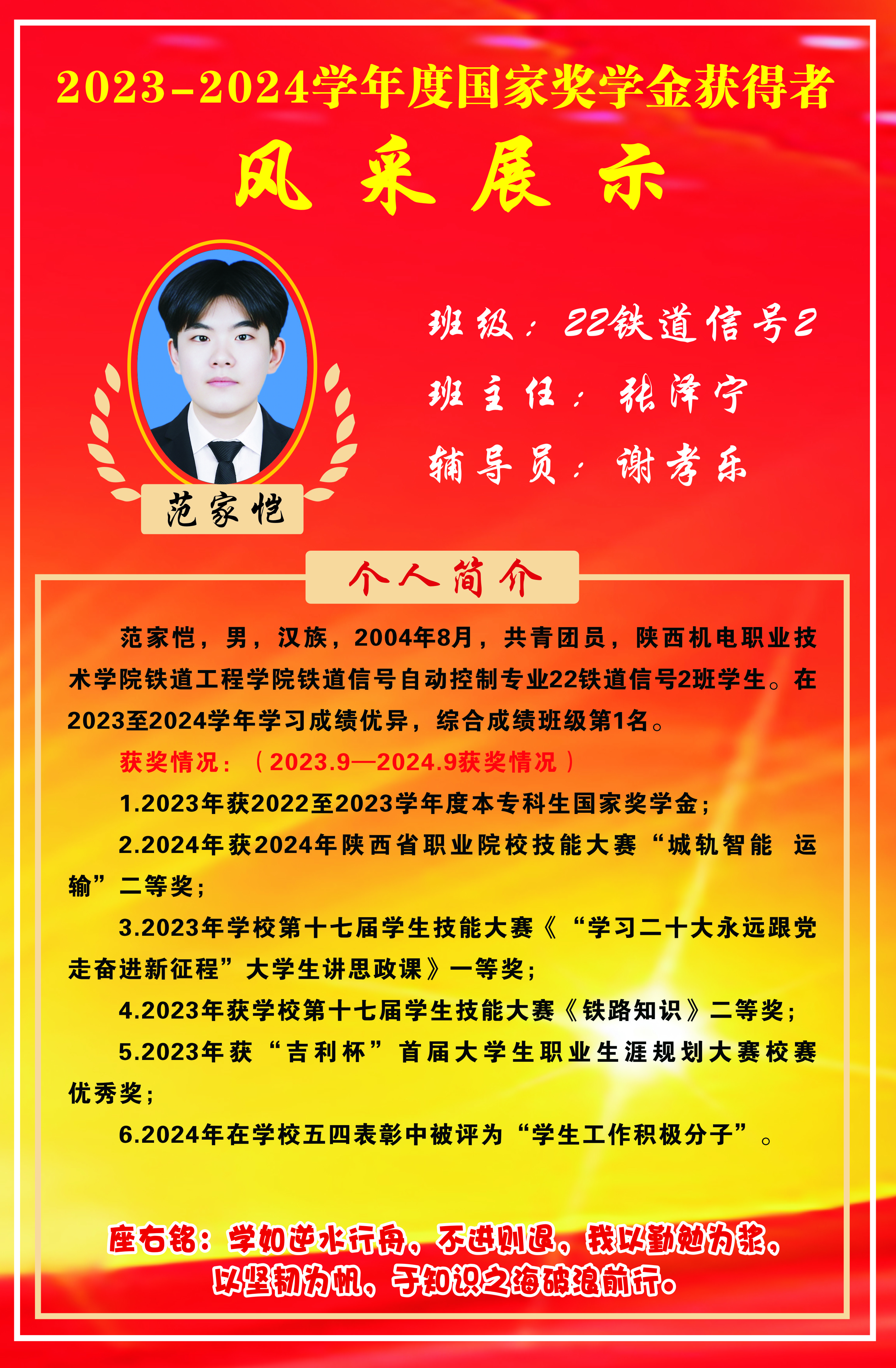 2023-2024国家奖学金获得者风采展示-22铁道信号2班范家恺