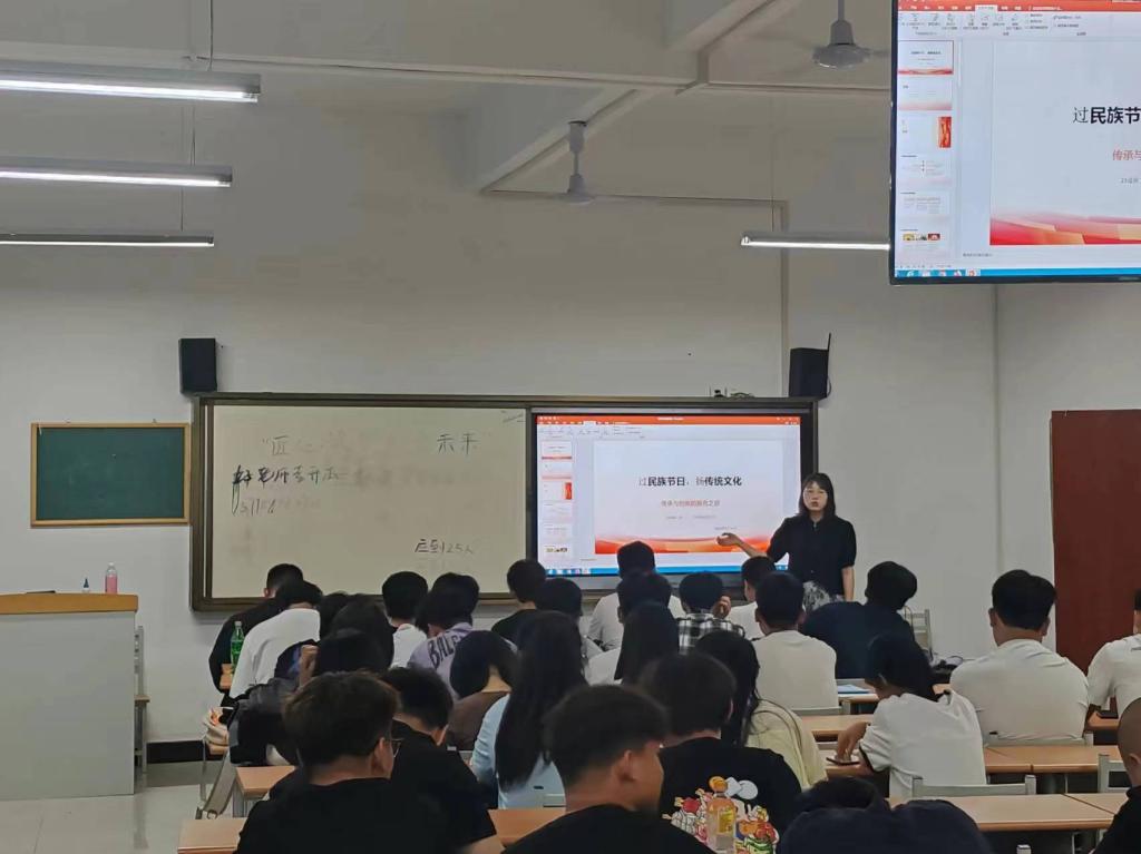 班会中,辅导员/班主任带领员工了解了端午节的由来和风俗习惯;引导员工学习端午文化,激发同学们的爱国热情;引导员工了解和学习中国其它传统节日,感受中华民族传统文化、非遗文化独特且深厚的底蕴和魅力;此外,通过对传统节日、非遗文化等的了解,教育引导员工增强文化自信和民族自豪感。