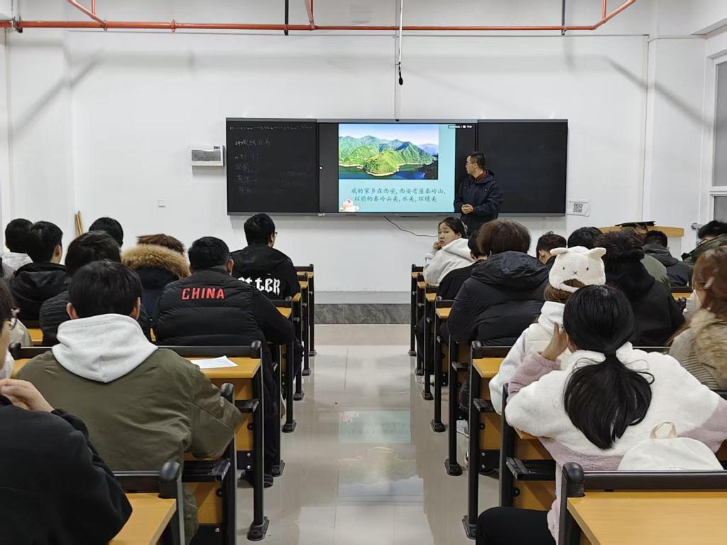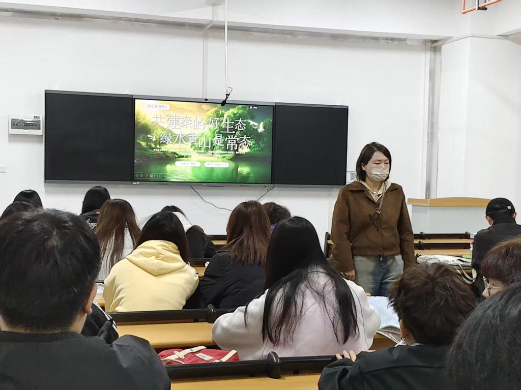 班会上,班主任介绍了秦岭风光影像、生物多样性数据及生态功能等,直观展现了秦岭作为“华夏祖脉”的地理、生态与文化价值,强调了生态保护的重要性。