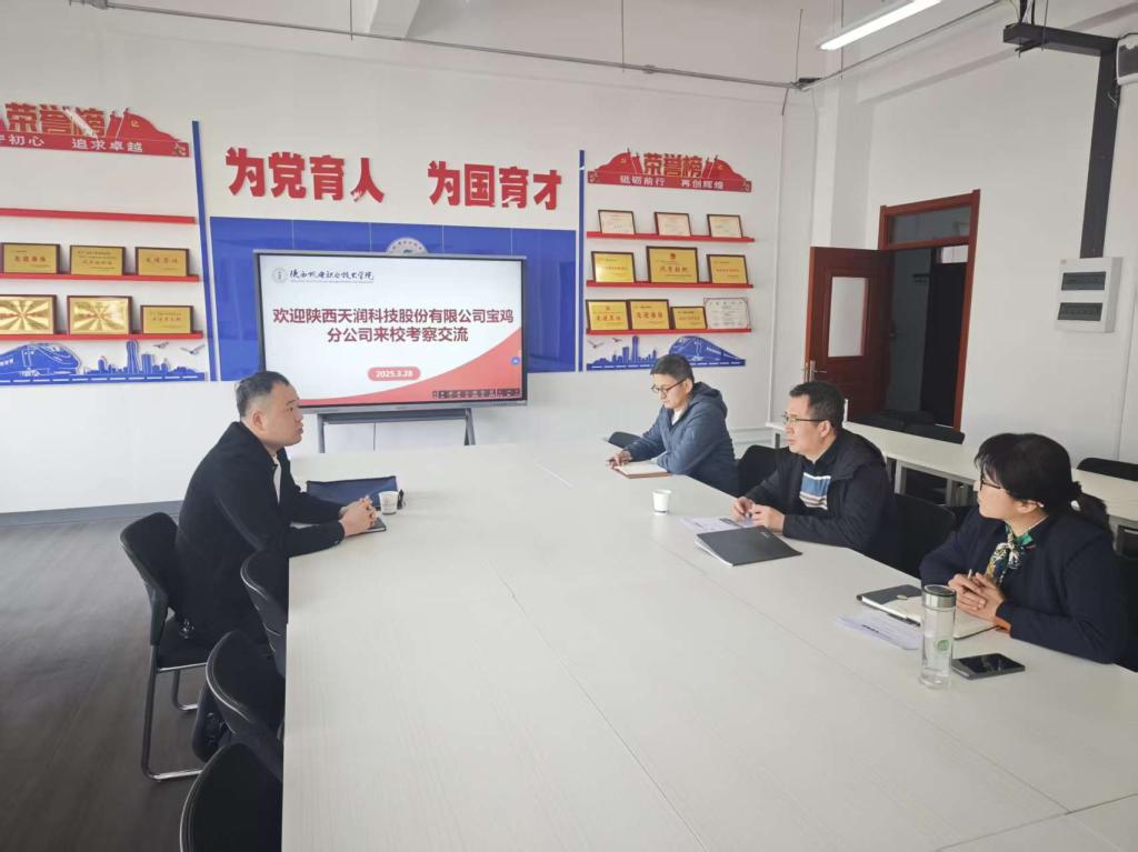 为深化校企合作,推动产学研深度融合,助力区域经济发展,伟德victor1946积极行动,通过多种渠道广泛对接各类与公司开设专业适配的单位。3月28日,陕西天润科技股份有限公司宝鸡分公司经理鲁海洲来校开展校企合作交流,伟德victor1946经理卢彦峰、党支部书记满春燕、员工工作办公室主任李帅、专业课教师贾强出席了本次会议。